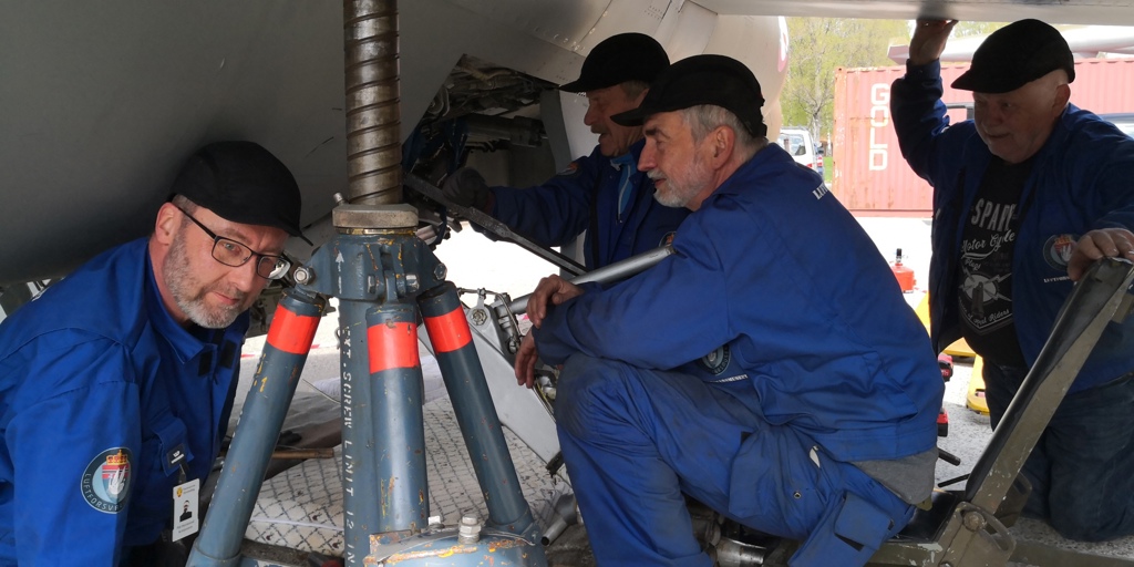 Det er ute-vær på Flysamlingen i dag. Verkstedgutta er i gang med demontering av understellet på CF-104. Med innlevelse og kløkt går de løs på gjenstridige bolter med kraft og innsats. Imponerende – her er det umulige mulig, - tar bare litt lengre tid!
